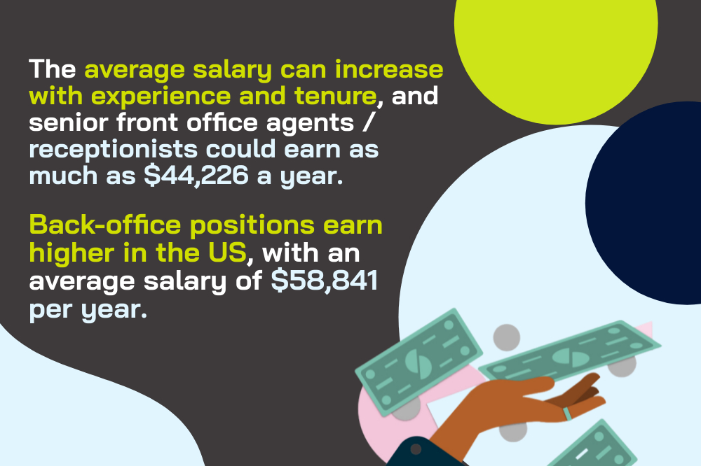Back-office positions earn higher in the US, with an average salary of $58,841 per year.