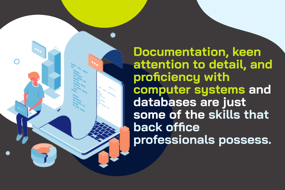 Documentation, keen attention to detail, and proficiency with computer systems and databases are just some of the skills that back office professionals possess. Employees in back offices are also required to have basic financial skills.