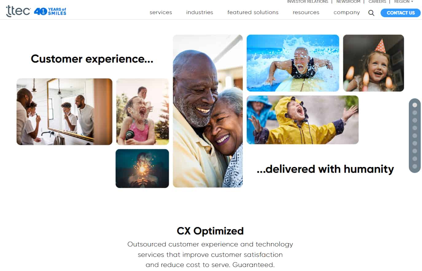 TTEC is a reliable and award-winning contact center outsourcing company. Their services can help brands improve their customer experience and reduce costs. They offer various outsourcing approaches, such as onshore, nearshore, offshore, virtual, and automated, which can fit any business needs. They are focused on delivering exceptional and innovative customer experiences that can define a brand. They are customer management experts who can help solve any CX issue through their CX technology and operational CX orchestration services.