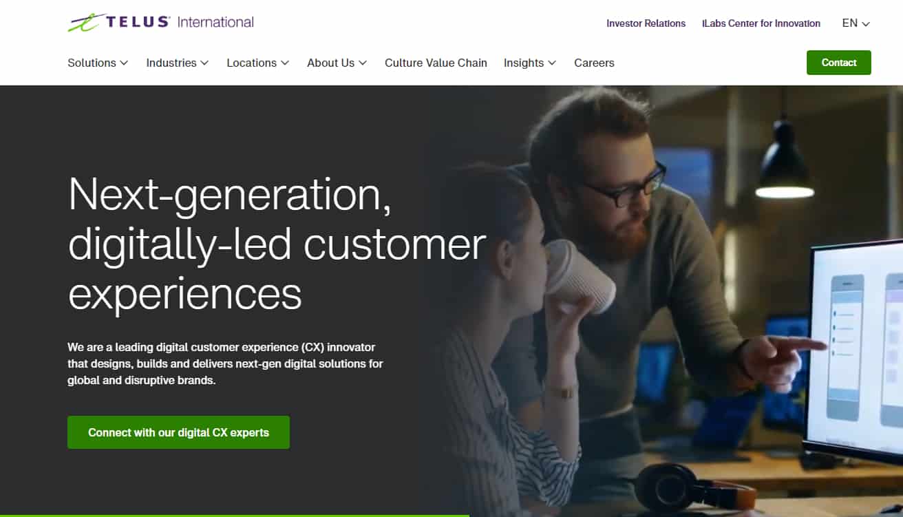 Telus International is a Canadian company that provides customer service outsourcing to global clients in a multitude of industries, including technology, games, communications, media, eCommerce, and financial services. Its services also include digital strategy innovation consulting, design, and IT lifecycle services, among others. With delivery centers across North and Central America, Europe, Africa, and Asia, Telus International has a global presence.